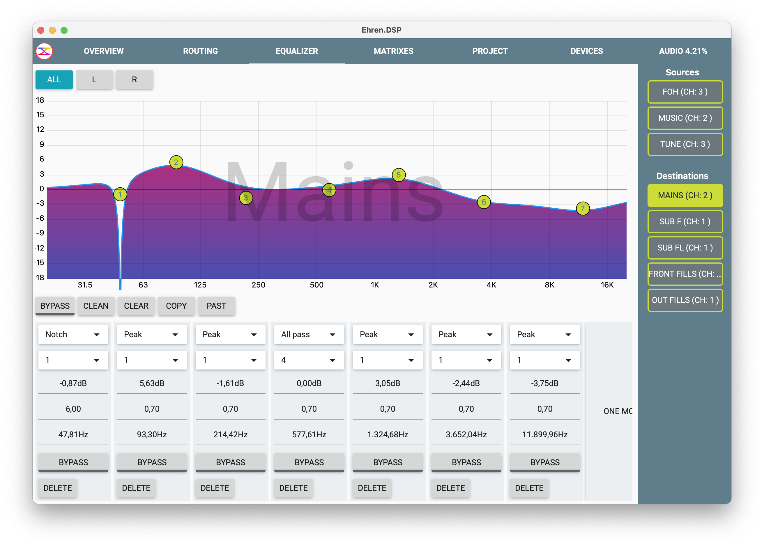 Precalculated equalisation and filters from Open Sound Meter can be transferred directly into Ehren.DSP Creates a continuous workflow from measurement to processing